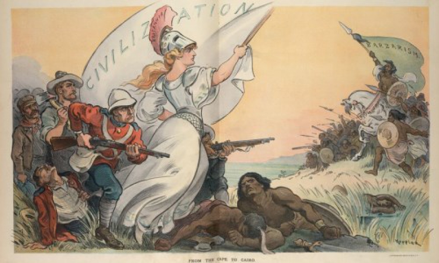 Triết thuyết văn minh chống lại mông muội được tung hô như vậy, đến cả việc bãi bỏ chế độ nô lệ năm 1848 cũng bị lợi dụng vì mục đích khai hóa. Bởi lẽ những nhà tư tưởng thời đó tìm thấy trong việc bãi bỏ chế độ nô lệ lời biện minh cho hành động thực dân. Rằng, chúng tôi, dân tộc khai sáng đến với dân tộc thấp kém để giúp họ từ bỏ khai thác nô lệ. Điều không thể tránh khỏi là chúng tôi sẽ phải dùng đến bạo lực với những dân tộc đó. Và thế là, bãi bỏ chế độ nô lệ và tiến hành công cuộc thực dân xem ra là những minh chứng cho sự vĩ đại của nền văn minh Âu châu (Costantini 2008: 58-5