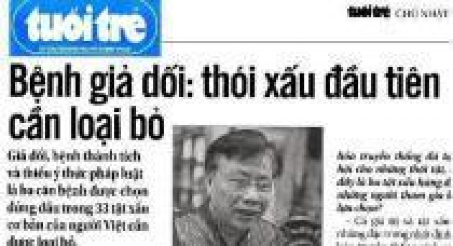 “Bệnh giả dối là thói xấu đầu tiên cần loại bỏ”là kết luận của cuộc điều tra xã hội học “Hệ giá trị Việt Nam trong thời kỳ công nghiệp hóa, hiện đại hóa và hội nhập quốc tế” (đăng trên Tuổi Trẻ ngày chủ nhật 8-3).