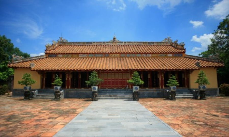 Để bảo vệ sự rực rỡ bền lâu trong sắc màu trang trí kiến trúc ngoài trời, các nghệ nhân thường sử dụng nhiều loại hình trang trí khác nhau như: khảm sành sứ, gốm tráng men, nề đắp nổi… song cao cấp hơn cả vẫn là loại hình trang trí pháp lam, phủ men, trên cốt đồng lá. Kết cấu pháp lam Huế vốn có tính chất đặc biệt là loại sản phẩm tráng men trên cốt bằng đồng, khác với pháp lam Trung Hoa đan ô hộc đồng rồi tô men đem nung với nhiệt độ cao để có màu men tươi. Trang trí pháp lam Huế từ lâu đã được xem là một loại hình trang trí độc đáo, ra đời từ thời Minh Mạng và đạt tới đỉnh cao phát triển ở thời Thiệu Trị.