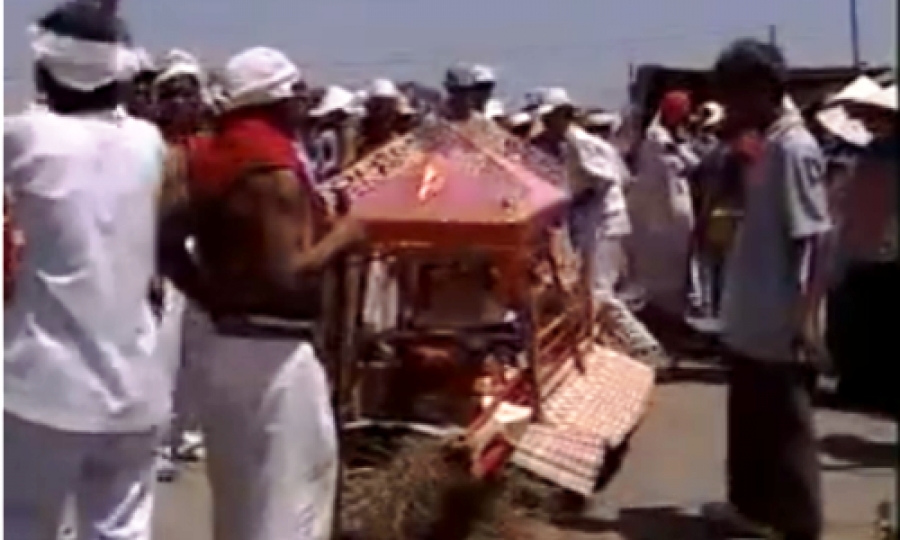 Trở lại định nghĩa về các biểu tượng trong một nghi lễ biểu tượng của Turner, ta thấy các biểu tượng còn tồn tại dưới dạng thức các hành động, cử chỉ, điệu bộ[21]. Trong quy trình của nghi lễ hỏa táng, tôi bắt gặp không ít những hành động, cử chỉ, điệu bộ mà chủ thể văn hóa quy định cho nó những ý nghĩa mang tính biểu tượng nhất định. Thông thường một đám hỏa táng của người Chăm sẽ bao gồm 4 ngày: ngày đầu gọi là ngày cho ăn hay ngày đại liệm (harei pahuak)[22], ngày thứ hai gọi là ngày ở không (harei daok thaoh), ngày thứ ba là ngày chém cây (harei tak kayau) và ngày cuối cùng là ngày hỏa táng hay thiêu (harei cuh). Trong suốt thời điểm đó, chúng ta sẽ bắt gặp vô vàng các hành động, cử chỉ, lời nói mang tính biểu tượng dẫn dắt đến một ý nghĩa biểu tượng nhất định.
