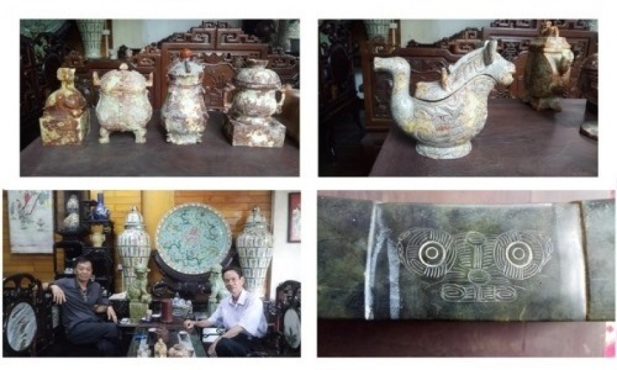 Rồi tin mững đã tới, bạn chúng tôi, nhà trà học Trịnh Quang Dũng gửi cho một số bức ảnh hiện vật ngọc của nhà sưu tập đồ cổ Vũ Ngọc Tân tại Hà Nội mà ông nói là ngọc Lương Chử. Xem ảnh, tôi nhận ra ngay, đó là ngọc Lương Chử. Sau đó, nhờ ông Dũng giới thiệu, tôi và nhà nghiên cứu văn hóa Việt cổ Lê An Vi tới thăm sưu tập ngọc Xích Quỷ giữa Thủ đô Hà Nội. Cảm giác của chúng tôi là sung sướng và choáng ngợp trước kho bảo vật vô giá của dân tộc. Tôi hoàn toàn tin đó là di vật Lương Chử mà hiện vật thuyết phục nhất là motype thao thiết “hình người mặt thú”được khắc trên chiếc gối ngọc. Tất cả đều là những sản phẩm được chế tác bởi những nghệ nhân bậc thầy và đều in dấu ấn của thời gian. Rất thân tình, ông Vũ Ngọc Tân bật mí: “Những người đào than ở Uông Bí khi phát hiện hầm ngọc đã giữ nguyên hiện trạng rồi báo cho ông. Ông đã cùng họ thu hồi hiện vật.”
