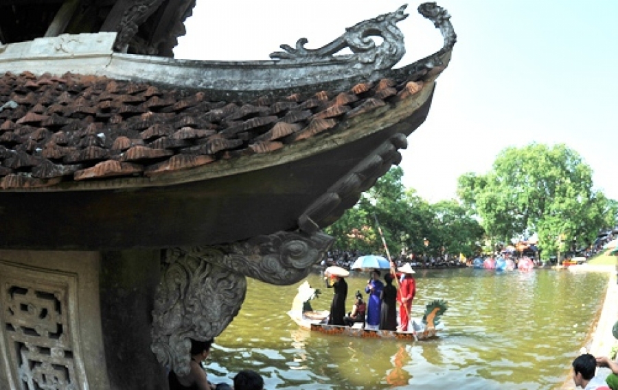 Hát quan họ trên thuyền. Ảnh Quốc Nam