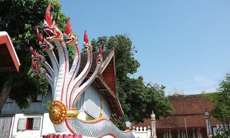Ở miền Bắc Thái Lan, Naga(1) là một quy ước kiến trúc phổ biến. Trong vai trò bảo hộ chánh điện thờ Phật, Naga được thể hiện dưới dạng Naga trượt trên diềm mái chùa; cuộn/quấn dưới mái hiên gie ra đến từ những rầm mái; bao quanh khung/cửa tò vò; trượt trên mặt tiền cột/trụ; và lượn sóng dọc theo lan can chánh điện phức hợp... Trong mỗi trường hợp, đầu Naga hay những cái đầu dựng đứng như che chở, miệng chúng mở to, thè lưỡi và những hàng răng sắc nhọn. Ngọn lửa bùng lên từ đầu, cách điệu hóa cao. Từ cổ thân hình Naga thường hay rũ xuống thành dải uốn cong đều đặn làm dịu bớt tính dữ tợn của con mắt tròn rực cháy và dãy vây lưng tua tủa.