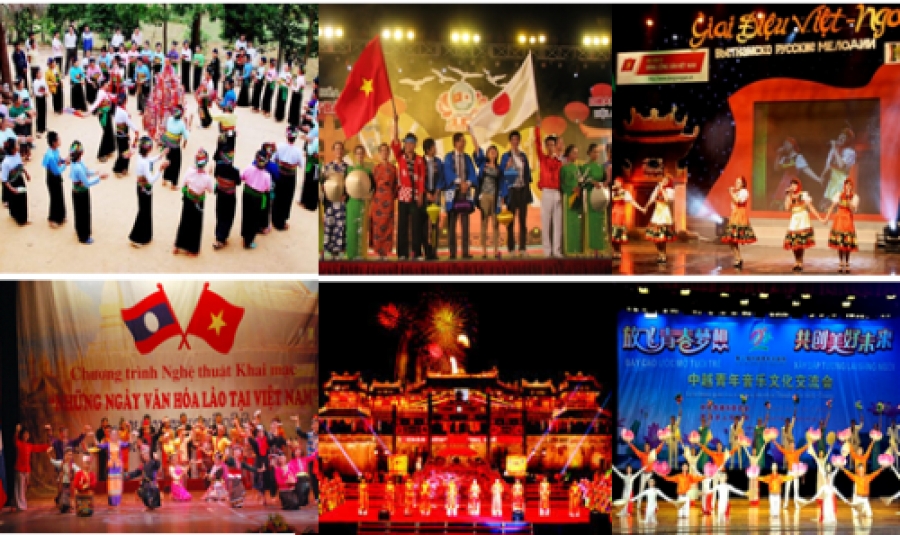Trong quá trình hội nhập quốc tế, việc trao đổi sản phẩm văn hóa nghệ thuật với nước ngoài được đẩy mạnh, chẳng hạn thông qua các Festival quốc tế; theo lời mời của các đối tác, các nhà tài trợ; tham gia các cuộc thi âm nhạc quốc tế; những ngày văn hóa Việt Nam tại các nước hay những ngày văn hóa nước ngoài tại Việt Nam. Việt Nam đã phối hợp với một số nước để tạo ra một số sản phẩm văn hóa nghệ thuật chung, thí dụ các vở kịch chung giữa nghệ sĩ Việt Nam với nghệ sĩ Mỹ, Pháp;… tác phẩm điện ảnh chung giữa Việt Nam với Trung Quốc, Hàn Quốc, Nhật,… Đặc biệt, việc khai thác một số loại hình nghệ thuật truyền thống dân tộc, như rối nước, đã mang lại giá trị giao lưu văn hóa và kinh tế trong quá trình hội nhập quốc tế.