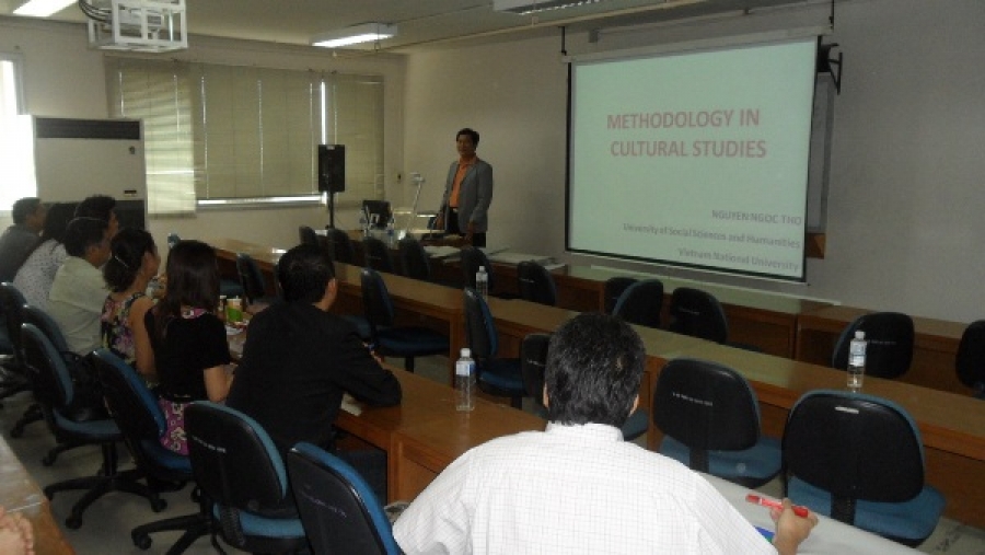 1. Nhận lời mời của Trường Khoa học Quản lý, ĐH Silpakorn Thái Lan và thừa lệnh Hiệu trưởng, TS. Nguyễn Ngọc Thơ, Trưởng BM Lý luận Văn hoá học Khoa Văn hoá học, kiêm Trưởng phòng QLKH-DA đã đến giảng dạy chuyên đề “Methodology in Cultural Studies” cho lớp NCS ngành Khoa học quản lý, Đại học Silpakorn Thái Lan từ ngày 27 đến 31/7/2013 tại Bangkok và Petchburi.